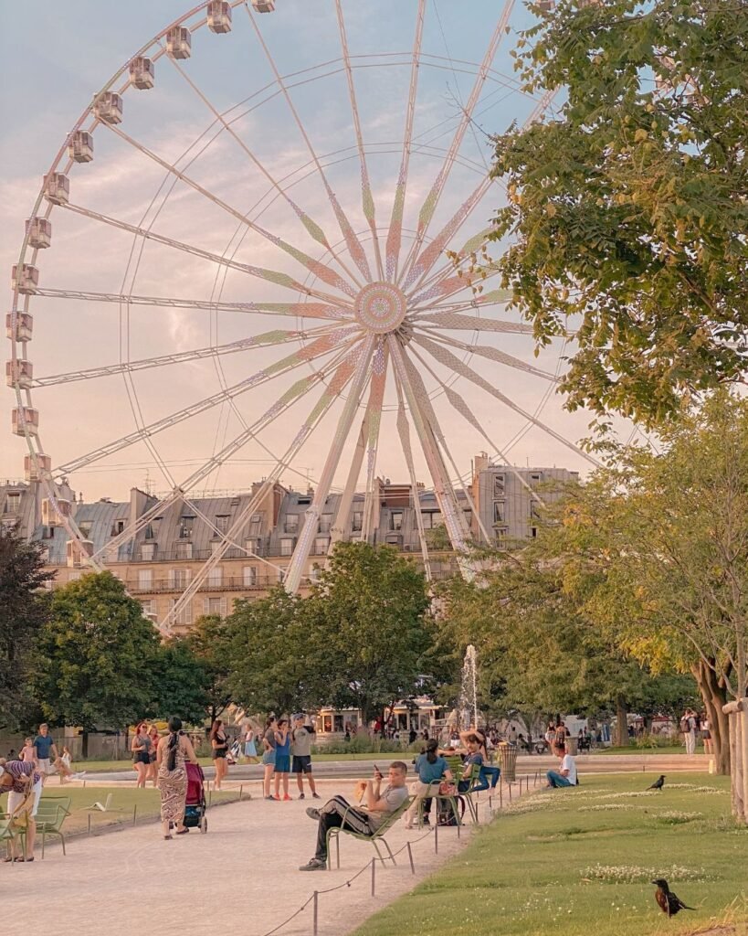 As you stroll through the park, you’ll come across the magical Paris Ferris Wheel — one of the best Instagram photo spots in the city.