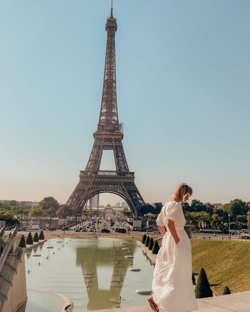 For one of the best dreamy photo spots in Paris, start your morning at the Trocadéro Gardens.